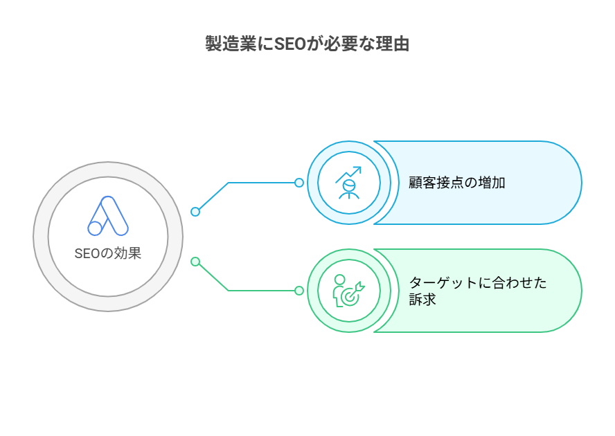 製造業にSEOが必要とされる理由には、主に以下の2つが挙げられます。
