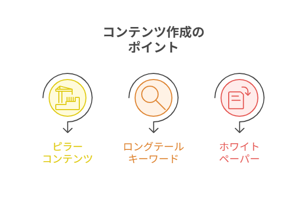 コンテンツに関する効果的な施策に「ピラーコンテンツの作成」が挙げられます。