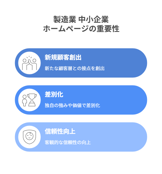 製造業の中小企業において、自社を知らない顧客層との出会いを創出して、競合他社との差別化を図るためにホームページは欠かせないツールといえます。
