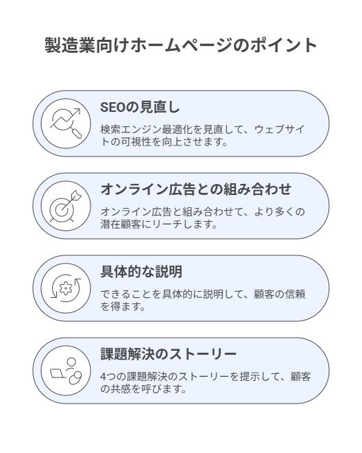 ここからは、製造業で成果につながるホームページをつくるポイントを紹介します。