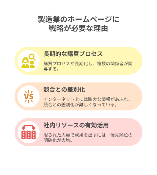 製造業ホームページに戦略が必要な理由は、以下の3つです。