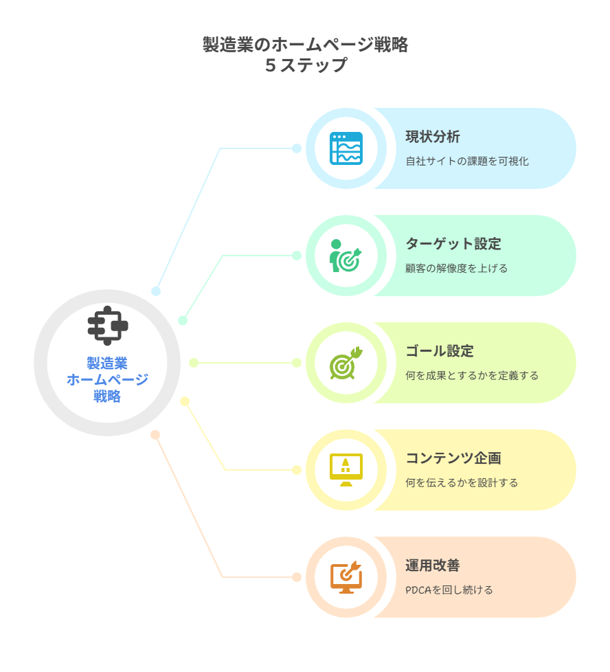製造業ホームページ戦略の立て方|BtoB集客を成功させる戦略設計5ステップ