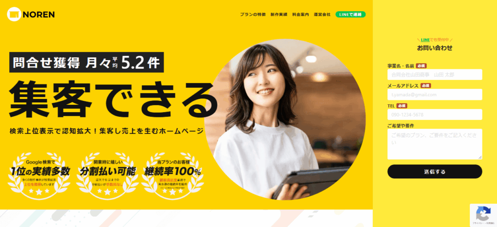 NOREN(のれん)は、BtoBの集客に特化したホームページの制作サービスです。