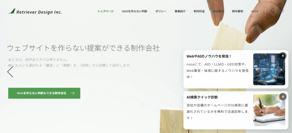 集客とブランディングを両立させた設計を得意としており、コーポレートサイトのみならず、採用サイトやカタログ制作、Web広告運用まで幅広く依頼できます。