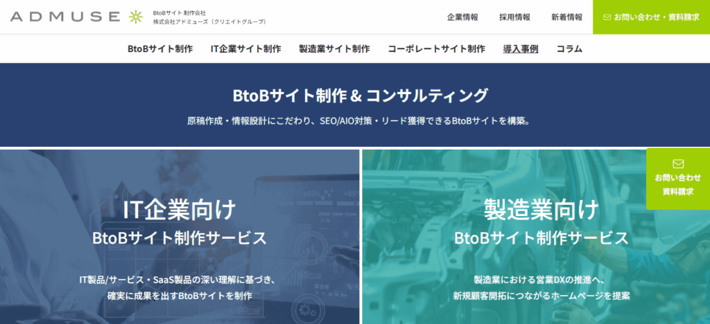 アドミューズは、製造業の営業力強化を支援するホームページ制作会社です。