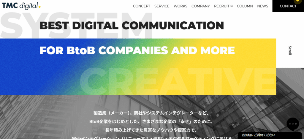 TMCデジタルは、製造業を中心に、商社やシステムインテグレータなどのBtoB企業を対象としたホームページ制作からWebマーケティングまでを一貫して支援しています。