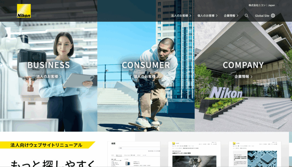 株式会社ニコンは、光利用技術をコアとし、映像事業(カメラ・レンズ)、光応用製品事業(露光装置)、ヘルスケア事業など、幅広い分野で製品やソリューションを提供するグローバル企業です。