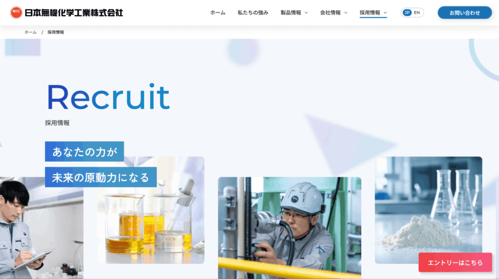 同社のホームページは、採用ページ上での積極的な情報発信が印象的です。会社についての情報を数字と共に紹介したり、「先輩社員の声」として社員の紹介を設けるなど、企業文化や働くイメージを伝える工夫がされています。
