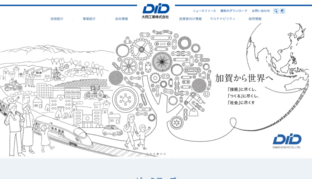石川県加賀市に本社を置く大同工業株式会社は、主に二輪車、自動車、産業機械用のチェーンや、二輪車用ホイールなどを製造・販売している企業です。