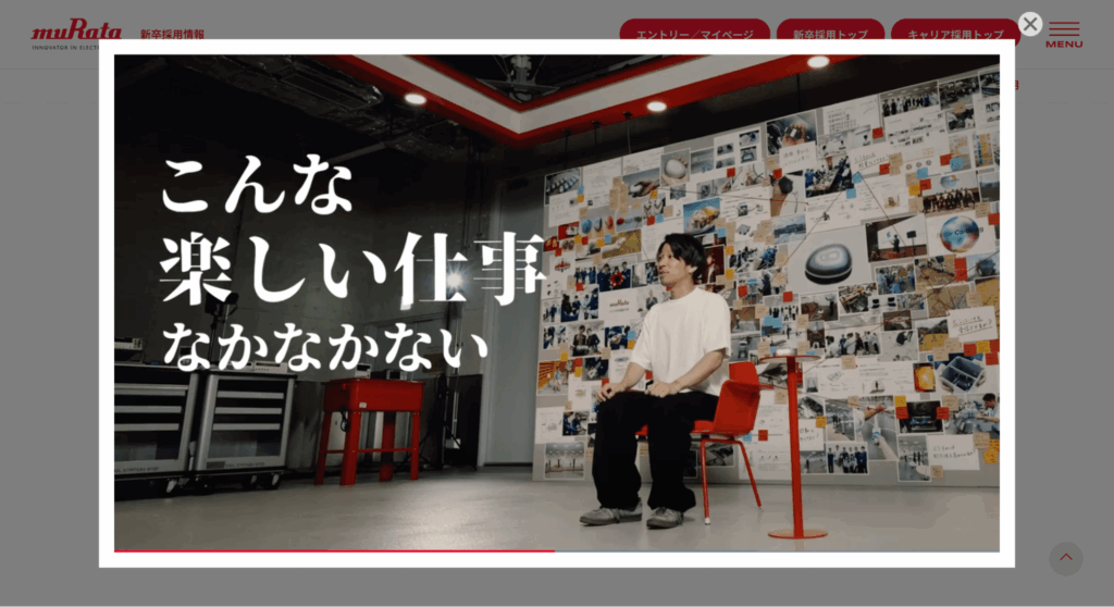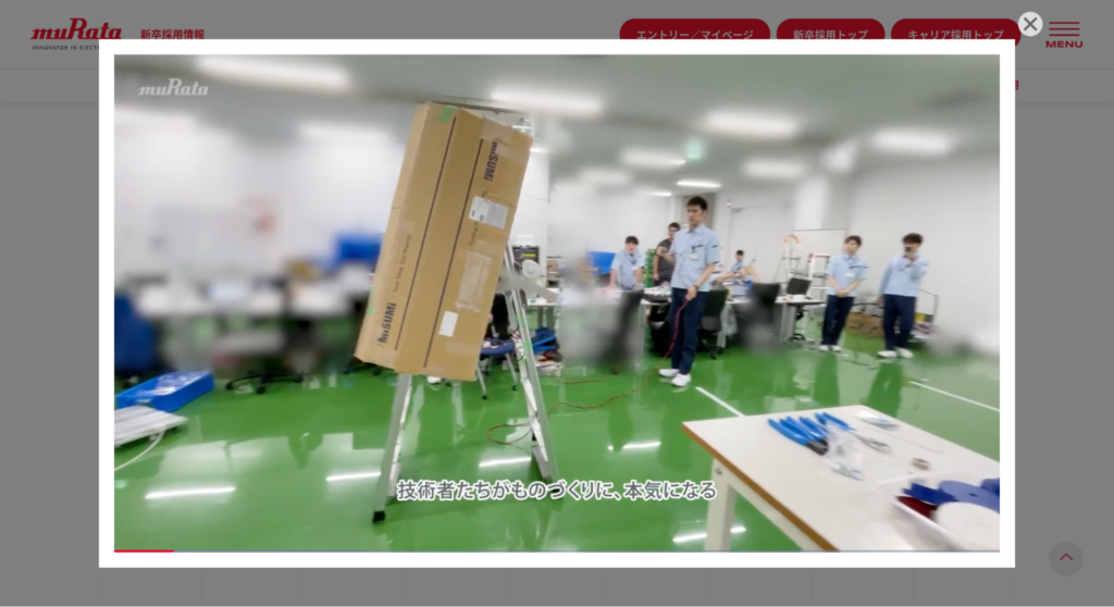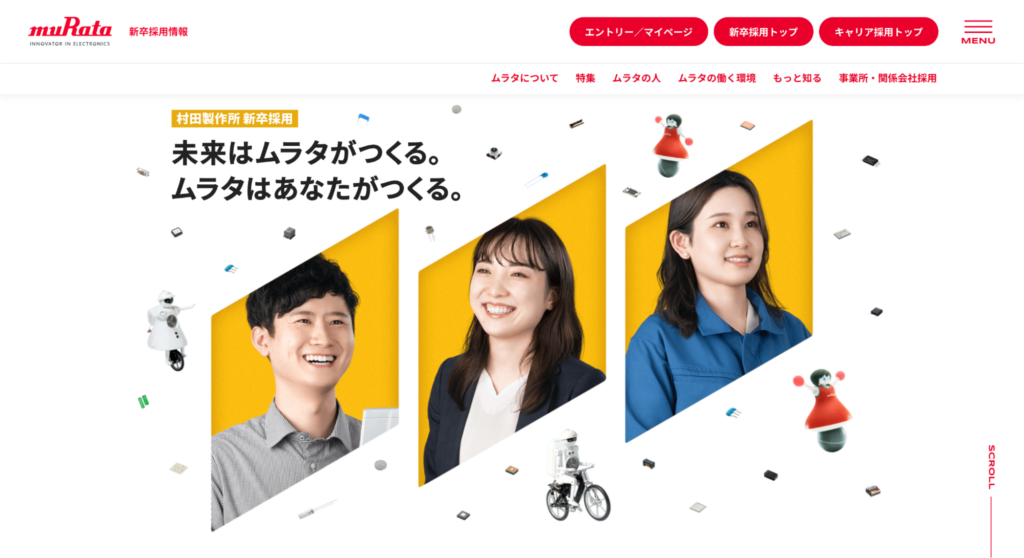 村田製作所は、電子部品メーカーとして世界でもトップクラスのシェアを誇る企業です。同社の新卒採用ページでは、学生に興味を持ってもらうための仕掛けが数多く用意されています。