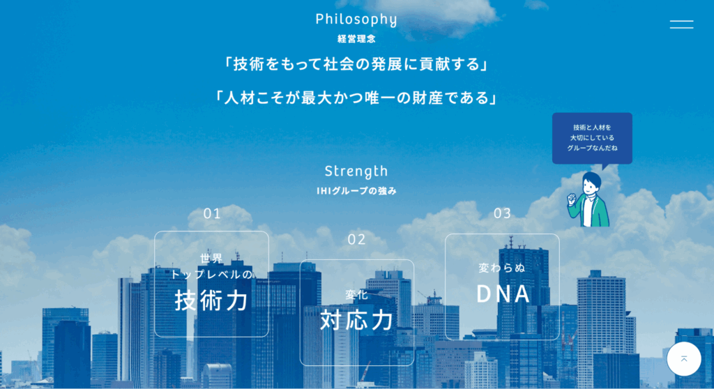 重工業という堅いイメージを払拭し、未来志向と社会貢献を強く押し出すことで、特に就職活動中の学生や技術者に対し、「この企業で働くことの意義」を訴求しています。