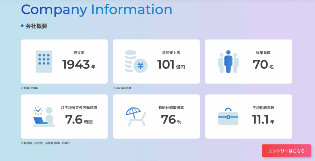 採用ページでは、従業員の写真や会社にまつわる数値を使った情報発信が目立ちます。日々多くの企業の採用ページを閲覧する求職者にとって、短時間で効率よく情報収集できる設計は、企業の好印象につながるポイントです。