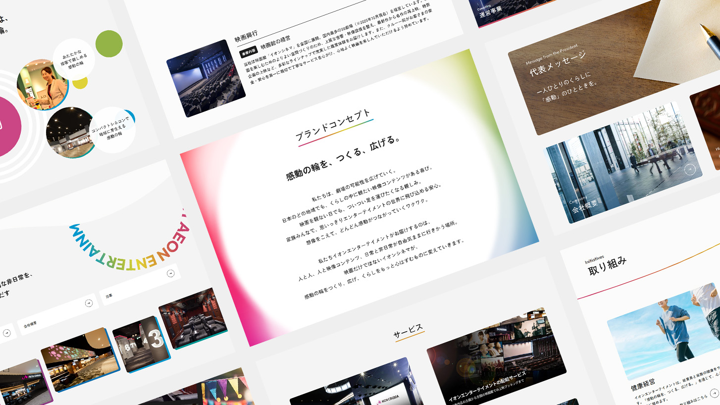 ブランドコンセプトやMVVについては、デザインやアニメーションを通じて、イオンエンターテイメントらしさを体現しています。