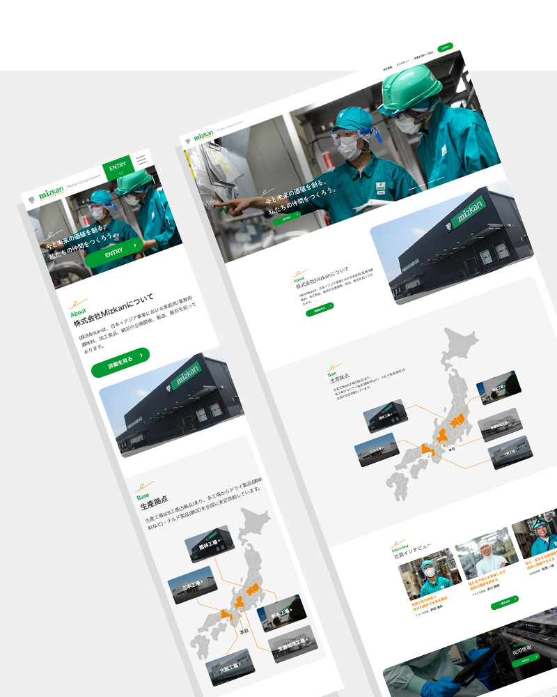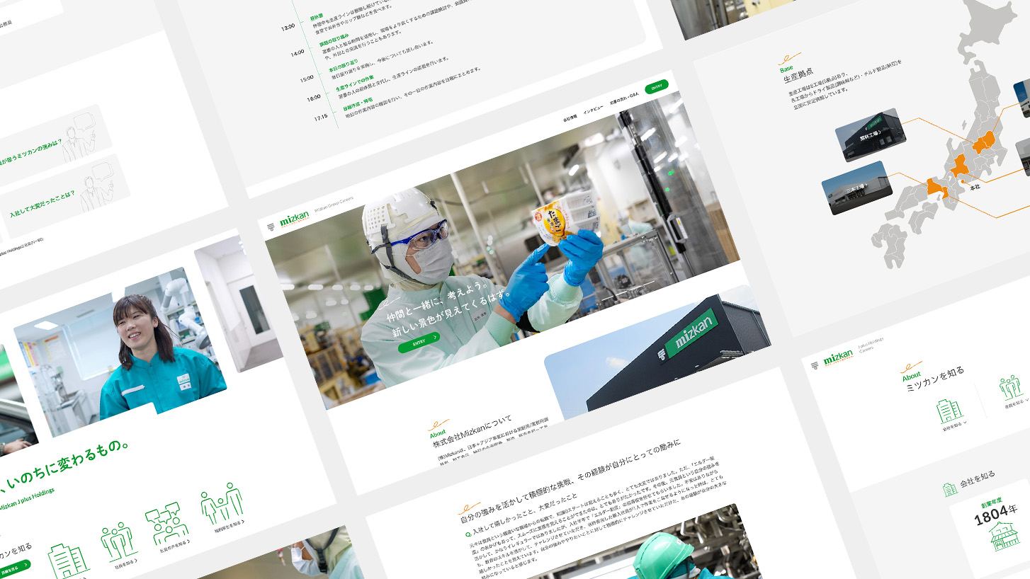 食酢をはじめとした調味料や加工食品を製造・販売する食品メーカー、Mizkan様。TMCデジタルでは、キャリア採用サイトの新規立ち上げ、インタビューページの企画・撮影・取材までを一貫して担当させていただきました。